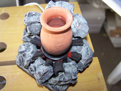 Bueno esta esta hecha con restos de porex de alta densidad, una estrevedes, una bombilla de llama y una bomba reciclada de una pecera.
