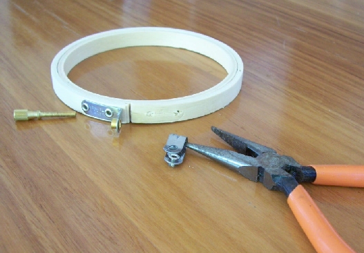 -aros de bordado a la derecha, la parte de la madera estuvo rota así puse el aro más grande sobre el interior.