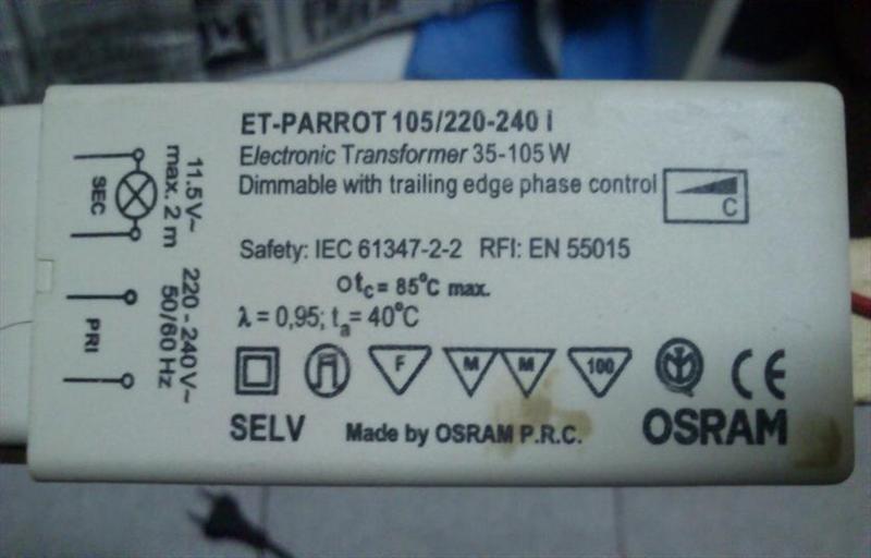 Mira, te pongo fotos. No obstante acabo de ir ahora a la tienda de nuevo y se lo he explicado al chico (le he dicho mas o menos las características de tu transformador de OSRAM) y me lo ha cambiado por otro transformador muy similar al tuyo (adjunto foto también). Cuando llegue a casa mediodía lo pruebo y te comento a ver que tal (cruzo los dedos...)