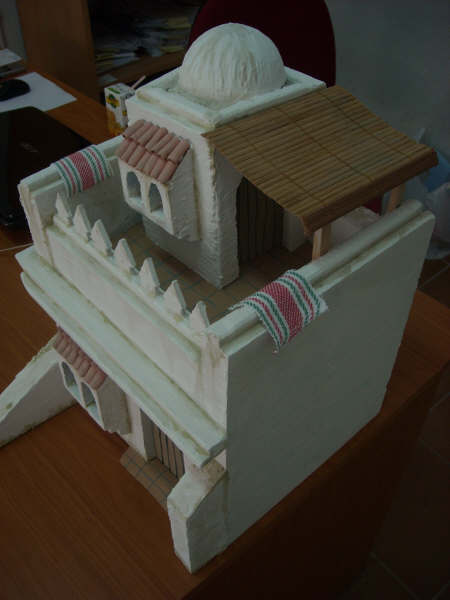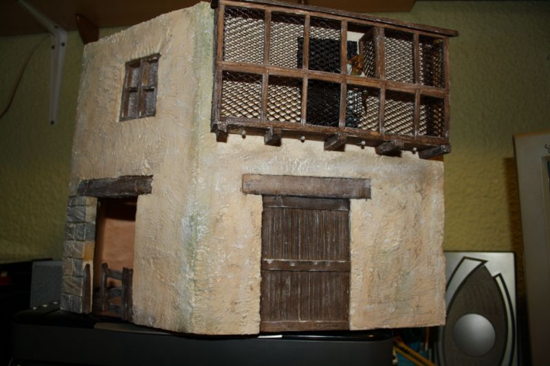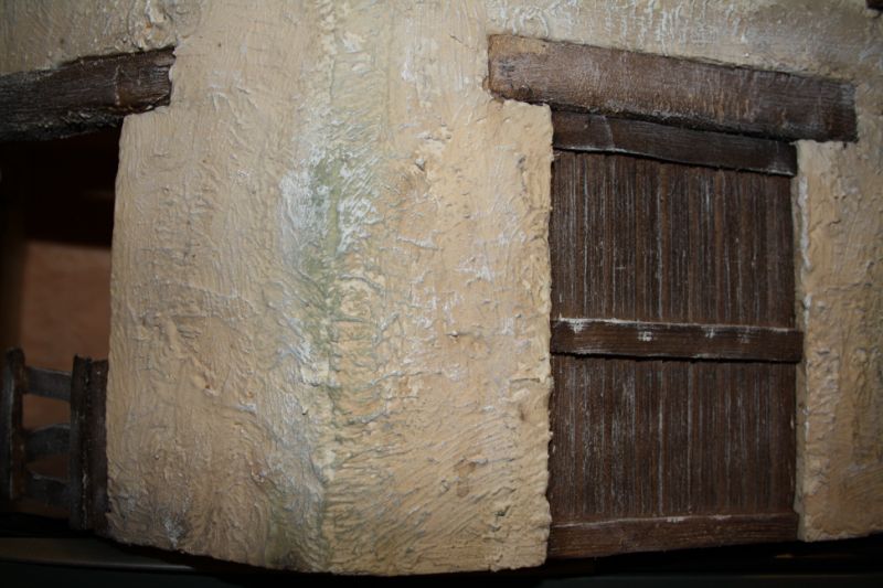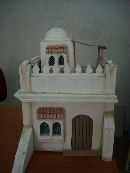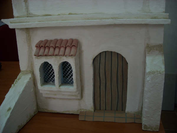 he buscado fotografias en la red, de casas hebreas y no suelen llevar la teja que le has le has puesto... de todas formas, el belén es algo anacrónico y podemos hacer todo cuanto la imaginación nos lo permita.respecto a lo de que quieres que las paredes sean reales, yo trataría de envejecer la construcción, es decir: por debajo de la cornisa, y en las esquinas cercanas al suelo y todas esas partes donde la lluvia y la suciedad y el paso del tiempo, decoloran...en mano nogalina y adelante!!! jejej