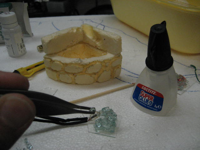 En esta hoguera utilicé dos pequeñas bombillas de neón, una de ellas de luz fija y la otra parpadeante, según describia Geni en la variante 3 citada en varios post anteriores de este mismo tema.