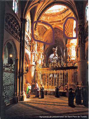 El otro día vi en un diorama catalán una Cúpula muy bien conseguida....son especialistas en cúpulas y bóvedas y ahora no se donde la he visto...era un ejemplo muy bueno de una cúpula sobre pechinas....mientras busco te pongo una de Manel Font en la que se aprecian las pechinas, en una cúpula de planta octogonal de una recreación de la catedral de Burgos....No tengo otra foto de esta, pero debe se una maravilla. En la otra foto te señalo lo que son las pechinas