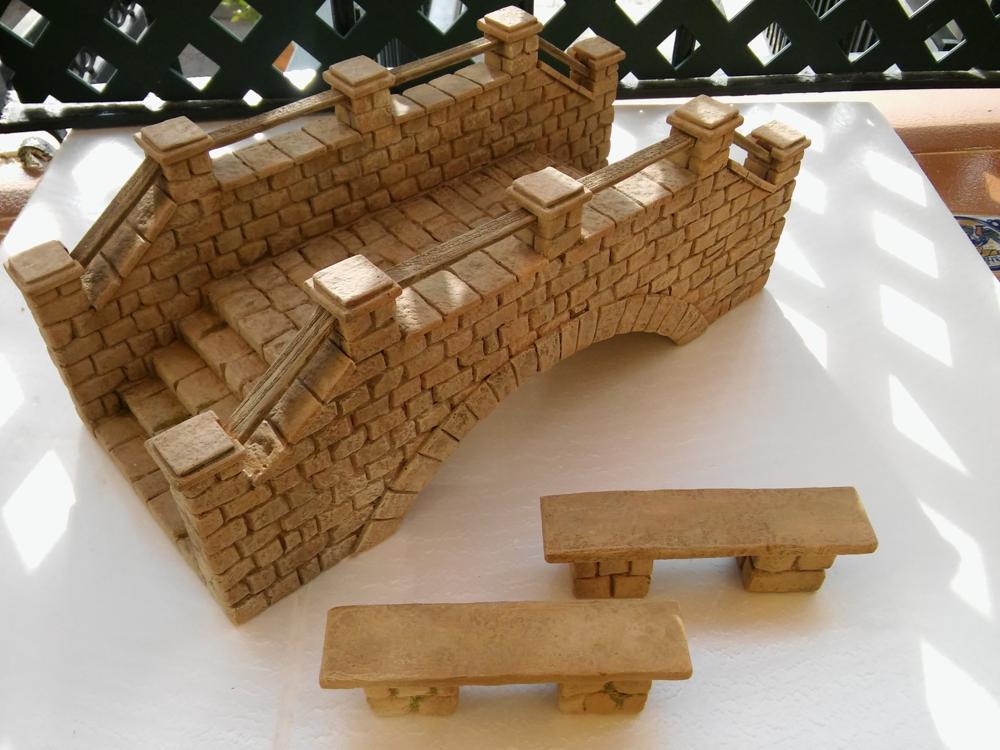 Adjunto unas cuantas fotos del pedido... un templo espectacular, unas casas para el pueblo con luces led (una simulación de antorchas fantástica), un gallinero, una tapia con puerta, un puente, cestos de frutas, ..... y al final me decidí por cogerle también dos pozos (y ya tengo 4 pero es que están increibles).
