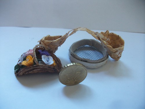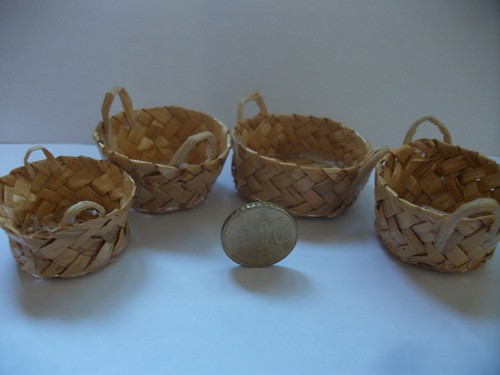 Bueno, he empezado hacer cosas para decorar mi belén, aunque soy un poco torpe me he atrevido y el resultado ahí queda. Me encontré un sombrero de paja de una muñeca, son tiras trenzadas y cosidas, le deshice las costuras y fui dándole forma de pequeños cestos y con una pistola de cera caliente los fui pegando,espero que os guste.
