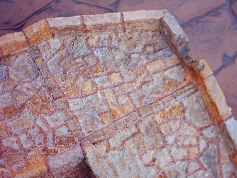 Hola foreros, no se si puede interesar a alguien, pero supongo que siempre habrá gente que le guste probar las cosas que vamos aprendiendo. Este fin de semana hice una rampa de bajada tipo calzada romana, en principio estaba planteado para hacer adoquin tallado, y empecé el planteamiento con una plancha de porexpan extruido (de color amarillo) para ahorrarme el pegado de las piezas y así "tallar" encima del porexpan. La plancha que tengo es de 4 cm. aprox., y decidí partirlo en 2, así cuando hacía la pieza de corte salían 2 iguales, una para cada lado de la bajada de la rampa. Pues bien aquí viene la cuestión........