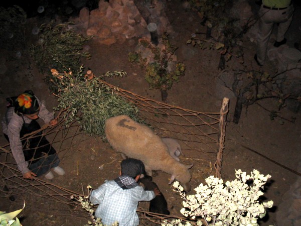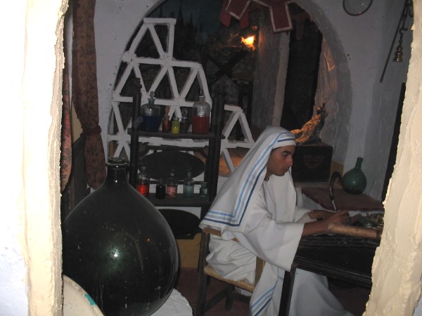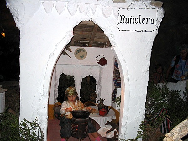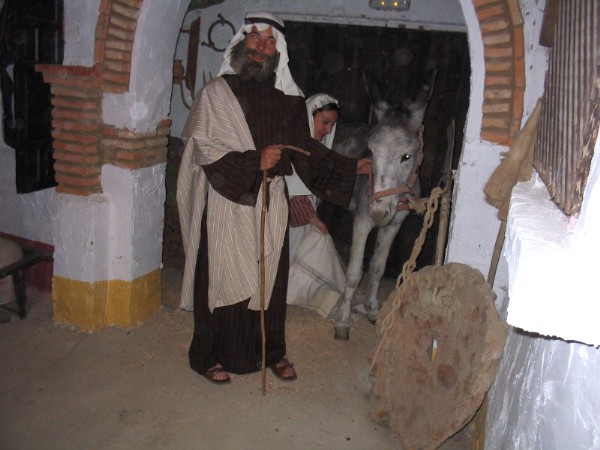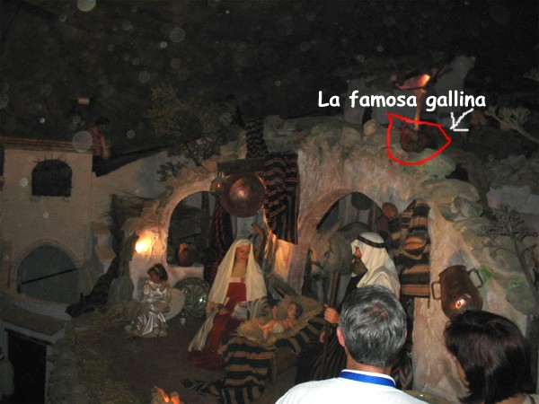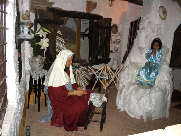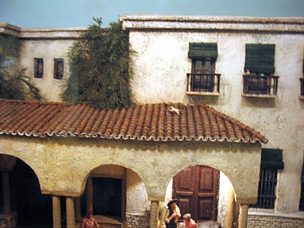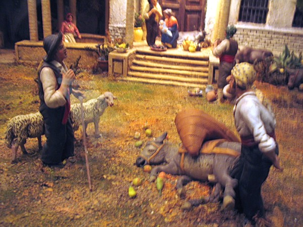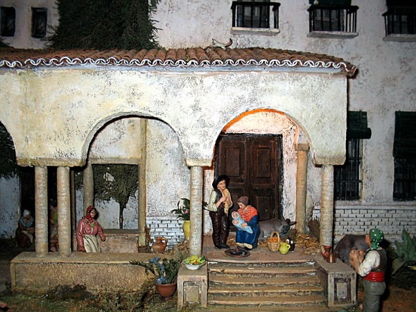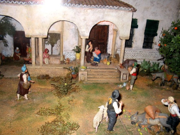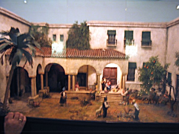 En uno de los pasillos nos encontramos con la grata sorpresa de un diorama representando un nacimiento, en el patio exterior del convento de las Hermanas de La Cruz.con figuras populares andaluzas (es que no se les olvidó ni un detalle a la Asociación Belenista “El Templo” anfitriona del Congreso, para que sintiéramos el belenismo por todos los lugares por donde pasábamos o estábamos.
