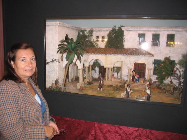 En uno de los pasillos nos encontramos con la grata sorpresa de un diorama representando un nacimiento, en el patio exterior del convento de las Hermanas de La Cruz.con figuras populares andaluzas (es que no se les olvidó ni un detalle a la Asociación Belenista “El Templo” anfitriona del Congreso, para que sintiéramos el belenismo por todos los lugares por donde pasábamos o estábamos.