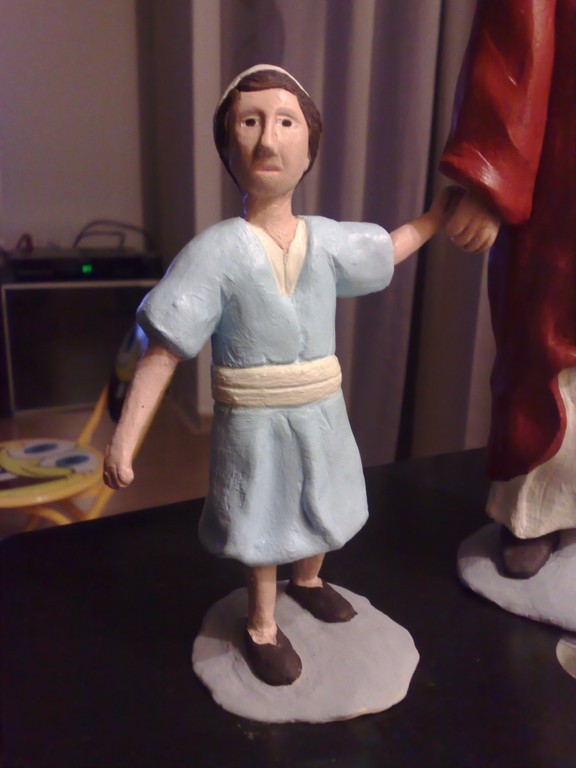 Por otro lado como bien te aconseja Jesus (Rompelje) las figuras no deben ser tan planas es decir hay que mezclar colores y otro consejo que me dieron es nunca utilizar los colores directos del bote hay que mezclar, y ya por ultimo a mi me gusta mucho poner colores llamativos para que cuando se coloquen en el belén no se pierdan entre la escenografía, pero ya te digo que esto es una cuestión de mucho tiempo y si tu familia y trabajo te lo permiten no dejar de practicar ya que la mano se va perdiendo. Consejo sigue a los grandes del foro Manuel, Lola, Joan, Santi Molto y unos cuantos mas que siempre estarán dispuestos a ayudarte.