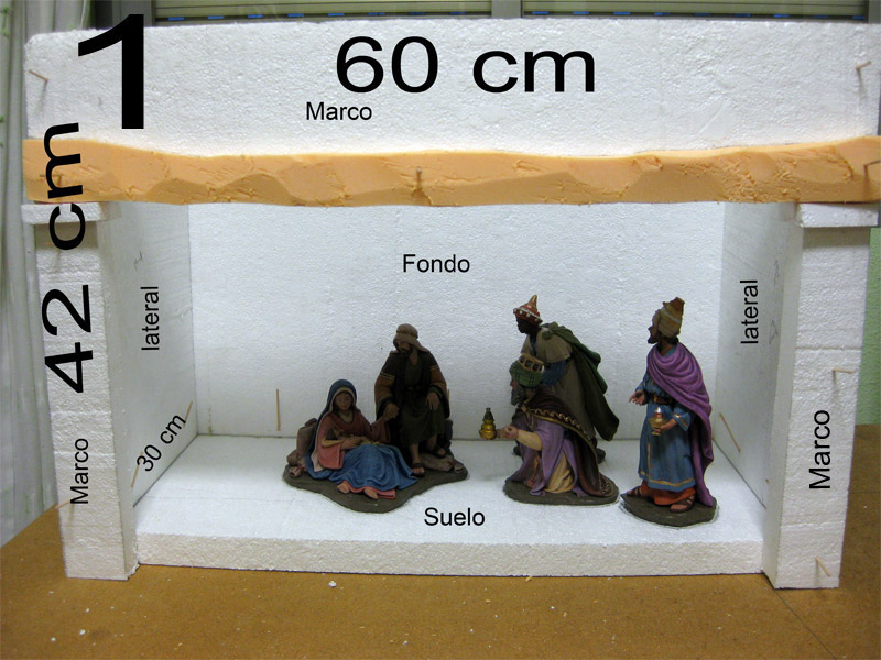 FOTO1 : Tomaremos medidas del hueco donde queramos encastrar el belén ,y comenzaremos con el despiece de nuestro trabajo .