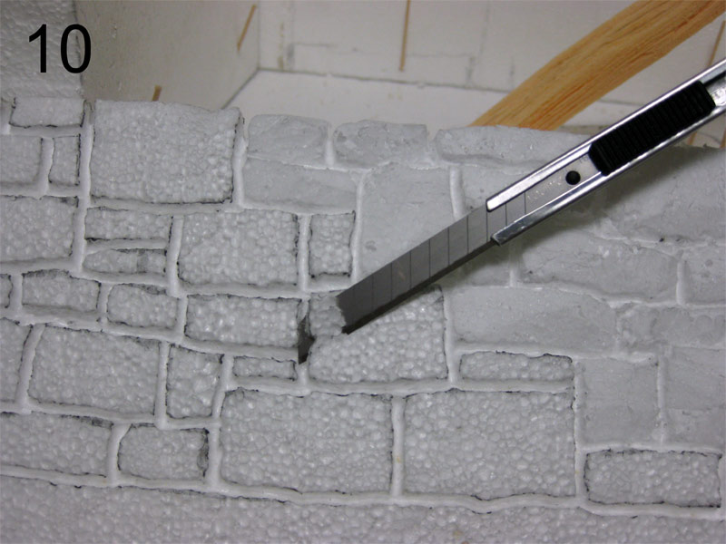 FOTO 10 : De esta manera iremos quitando lo quemado con el soldador y tallaremos cada piedra dándole la textura y profundidad deseada ,incluso rompiendo .