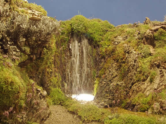 5- El inicio del rio puede ser una cascada, utilizando corcho natural (le haces un agujuro con un taladro para que pase la manguera y luego disimulas esta con musgo). Pero ten cuidado, no hagas la cascada muy alta (en este caso, deberías usar un corcho de 6 o más cm de profundidad.