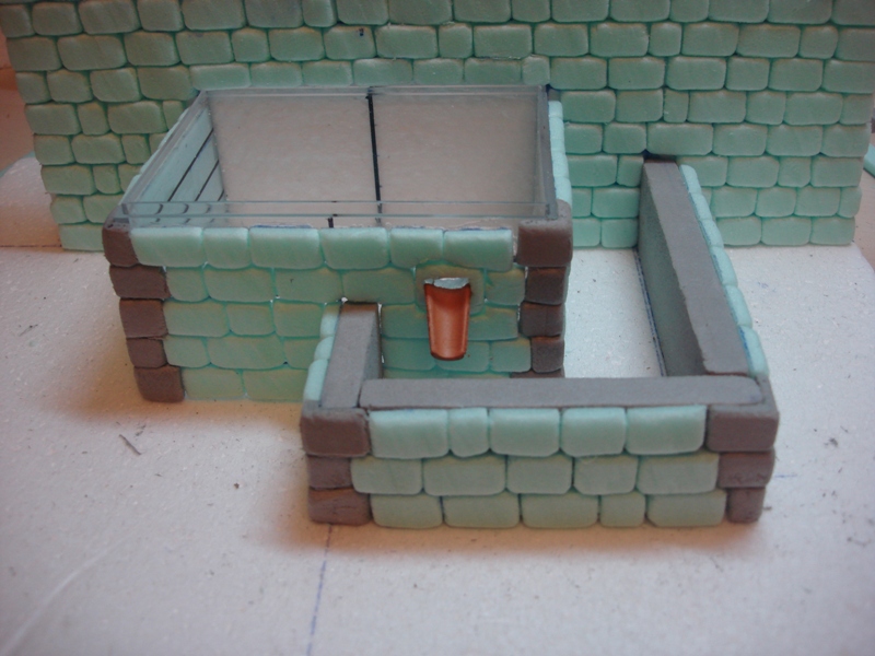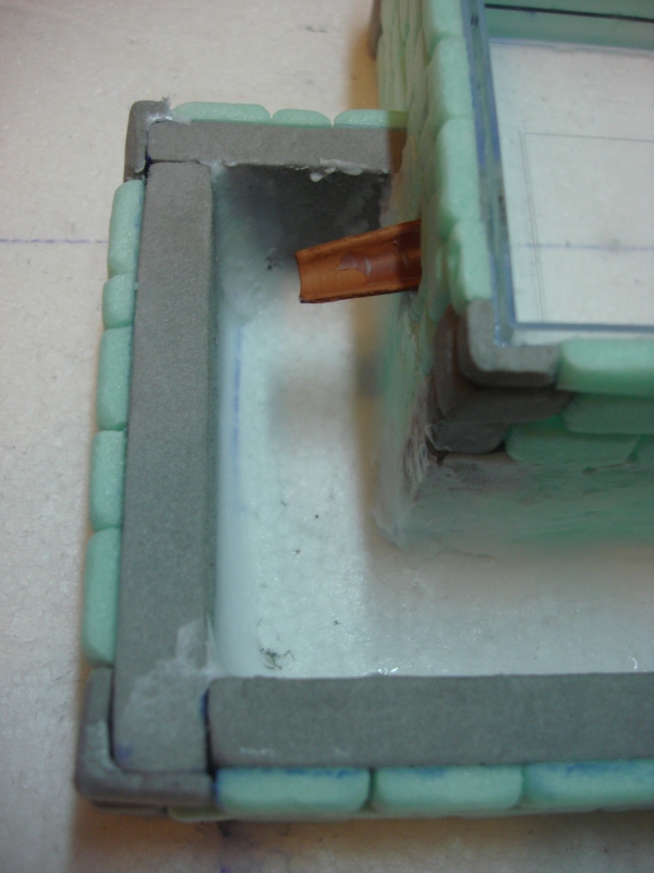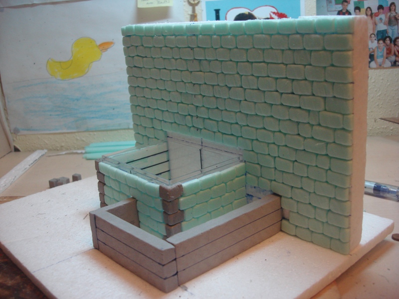 Posteriormente, con porex extruído, he hecho una pileta inferior (abrevadero) o pileta para personas diminutas J (Fotos 4 y 5)