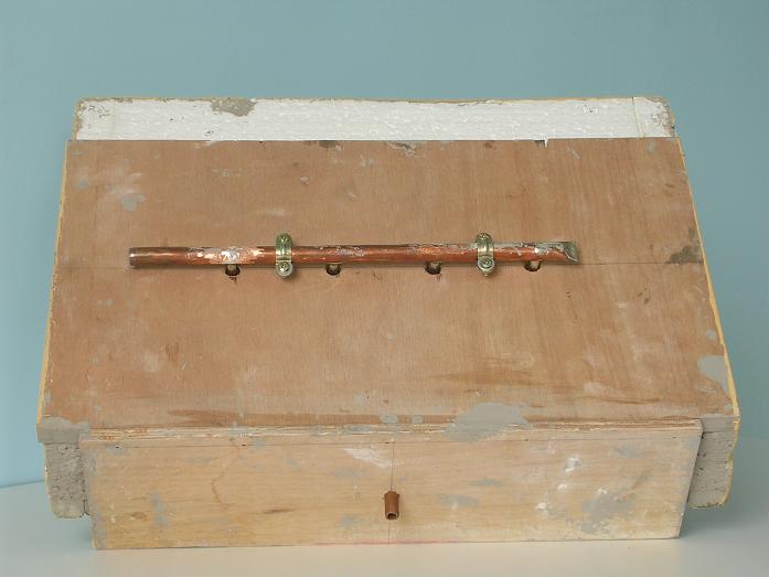 Al tubo de cobre de 13 mm le hice cuatro taladros de 6 mm y le introduje los cuatro tubos de cobre de 6 mm y los soldé con estaño.