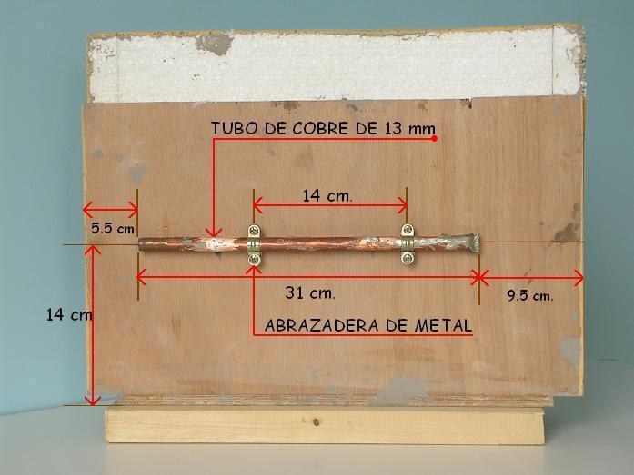 Al tubo de cobre de 13 mm le hice cuatro taladros de 6 mm y le introduje los cuatro tubos de cobre de 6 mm y los soldé con estaño.