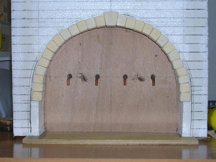 Tercero: Para darle la forma deseada al montículo, fui pegando con escayola pequeños trozos de poliestireno expandido; esta escayola debe estar más espesa que la utilizada para la aspillera (tuve la precaución de hacer poca cantidad y a medida que me iba haciendo falta, para que me diera tiempo trabajarla antes de que fraguara, utilizando como recipiente la mitad de una pelota de coma).