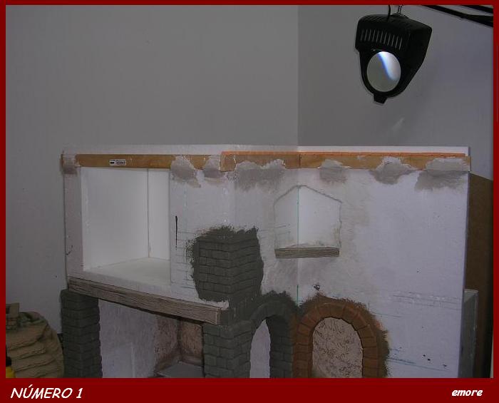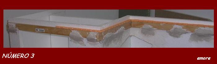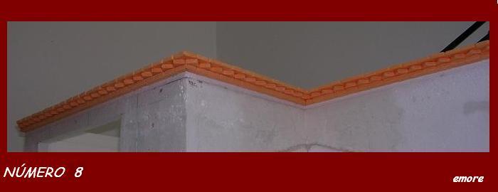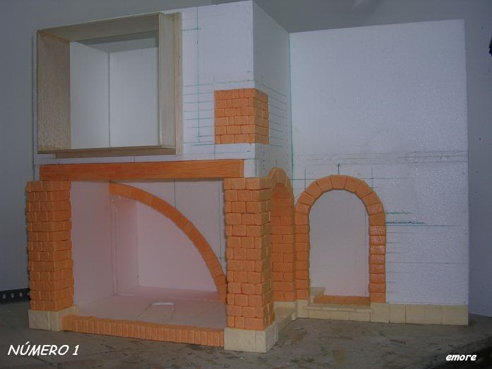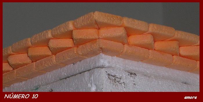 La cornisa la he construido ladrillo a ladrillo. El material que he utilizado es el poliestireno extruído.