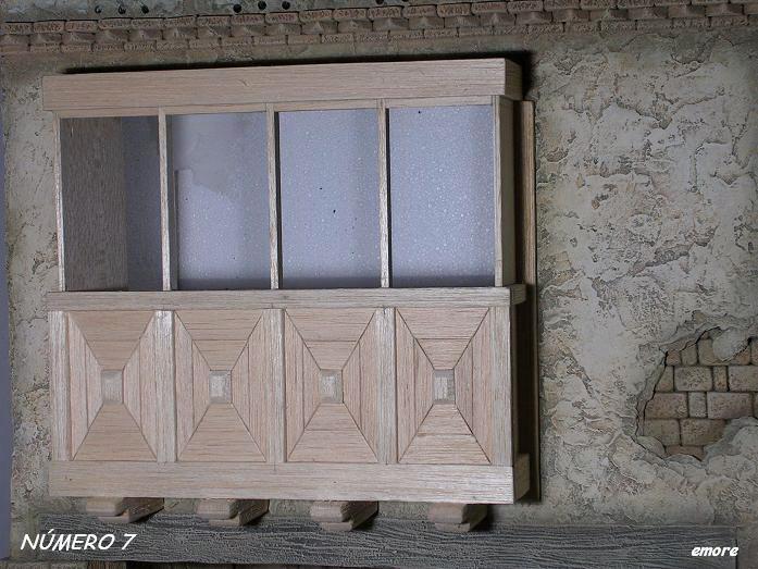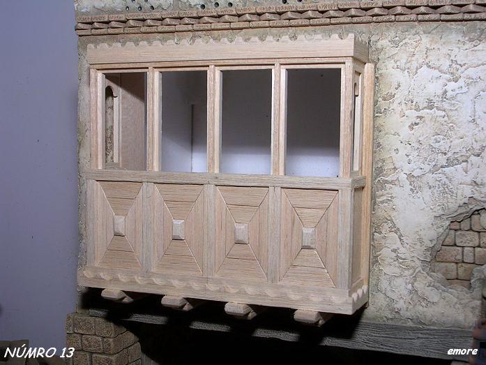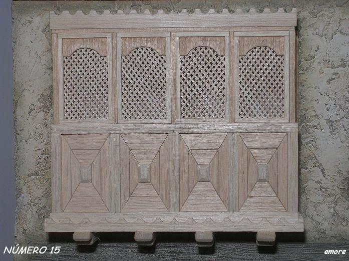 José, Para las celosías, he utilizado la chapa de madera de balsa de 1 mm de grosor X 10 cm. de ancha X 1 mt. de larga y de dicha chapa, he cortado tiras a 1.5 mm de ancho y por supuesto muchísima paciencia.