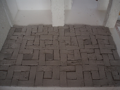 Muy bonito Lluvia, yo el suelo de la terraza lo haria de, creo que le llaman así, terrazo catalan, losa catalana, tendra distintos nombres en cada sitio, es el que se acostumbra a poner en los suelos de patios y terrazas, son de color rojo.