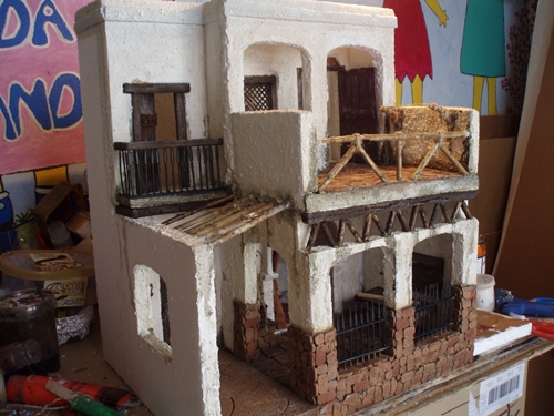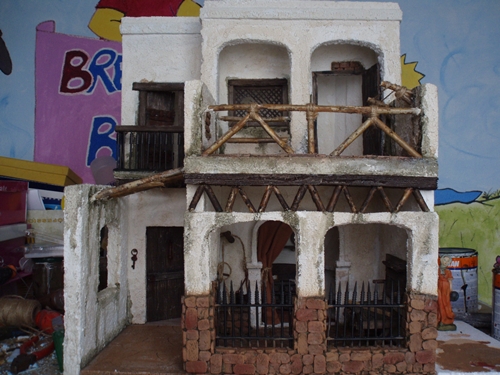 pero en esta construccion en las paredes solo he utilizado el agua sucia de los pinceles y un poco de verde para las humedades.Gracias por opinar mi trabajo.Saludos