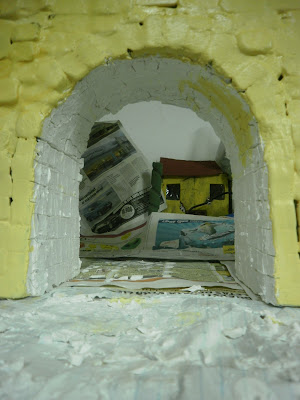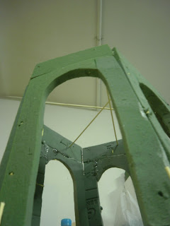 Ya he colocado tiras (delante de ellas irán las columnas) entre las uniones de las distintas planchas de los arcos. También está todo escayolado. Lo próximo es comenzar a trabajar en la parte alta de las columnas y hacer unas bases a las columnas ya que calculé mal y me falta espacio. Lo siguiente será realizar la base de la cúpula y finalmente la cúpula.
