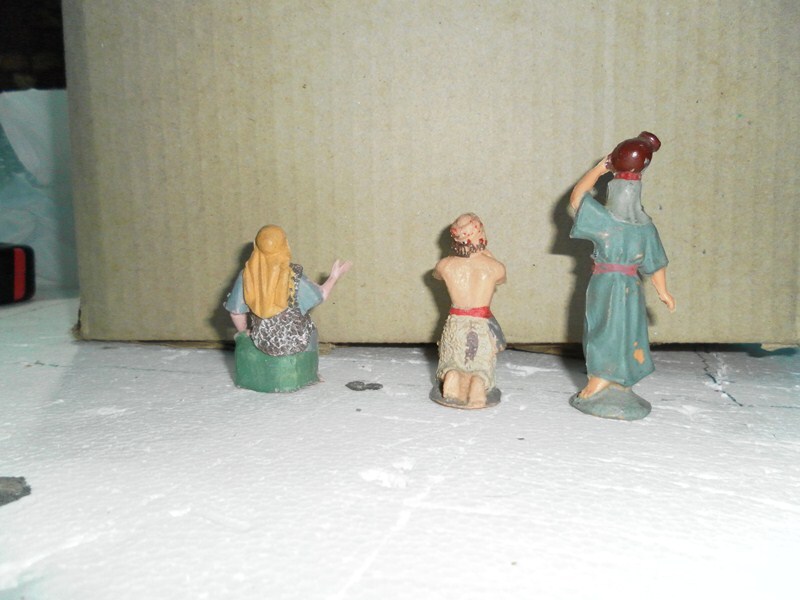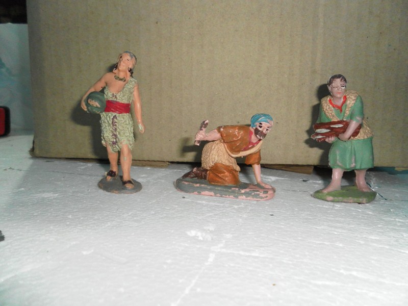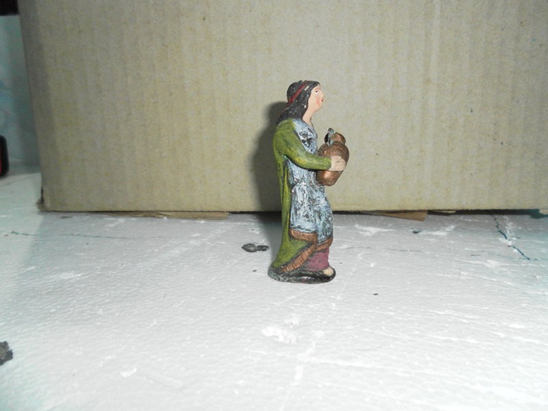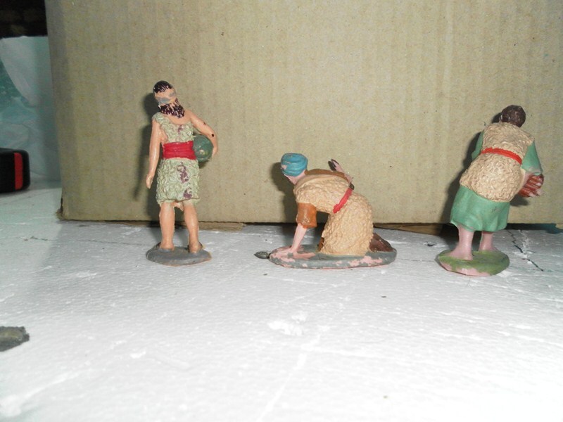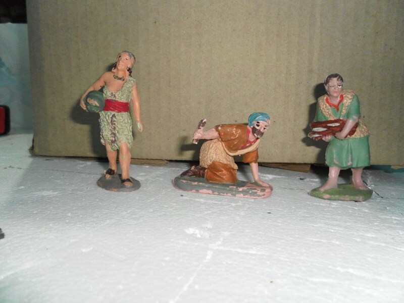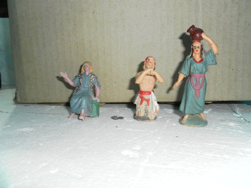 Las seis primeras, que son de plástico, corresponden a las reproducciones de Daniel José que hacen los Germans Colomer. Se encuentran todavía muchos modelos en el mercado. La última figura parece terracota murciana.