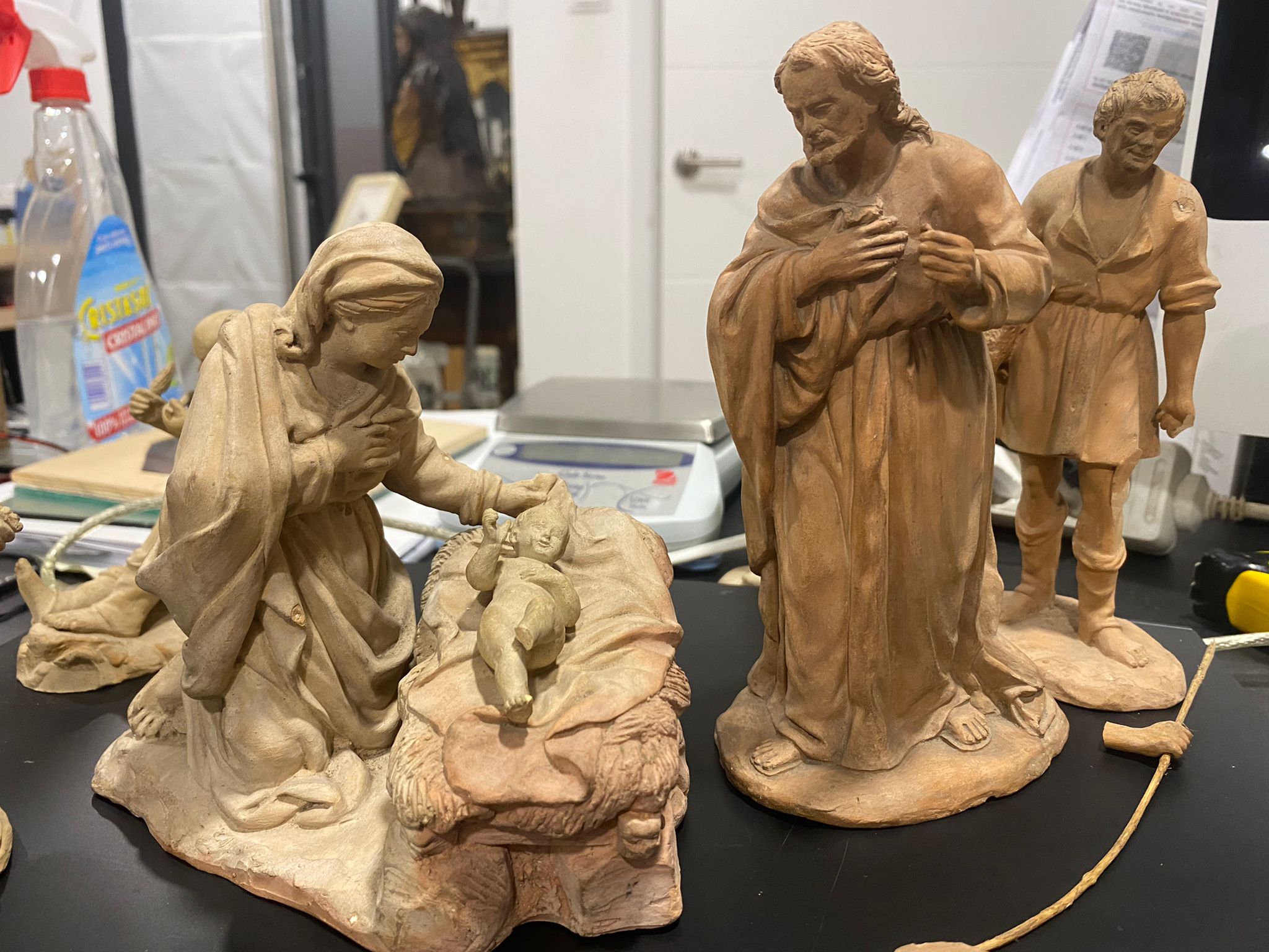Sin duda son figuras de molde de José Fernandez, apodado en Mallorca “el Santet” por las figuras de santos que hacía en la isla. Este mismo grupo lo hacía en distintas medidas.