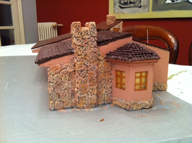 Hola a todos. Estoy tratando de copiar una casa de campo que tienen mis suegros para hacer un belén. Ya he puesto fotos de los avances en Arquitectura. Diorama alborox (la hellen). La casa está pintada de un color terracota pero algunas de las paredes están forradas de un piedra caliza blanquecina-rosa-anaranjada.
