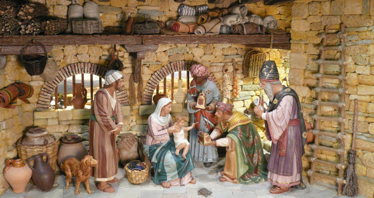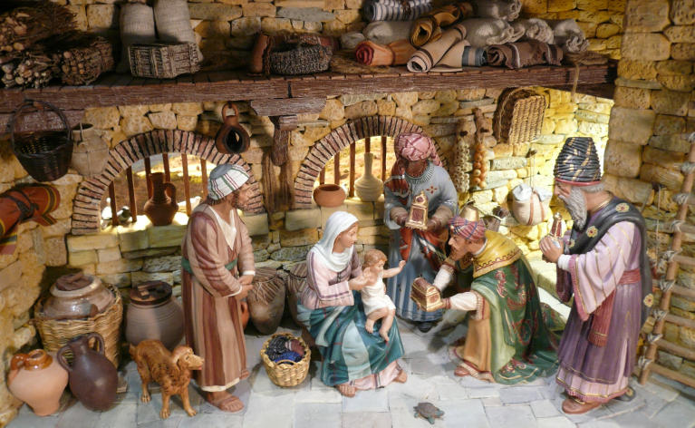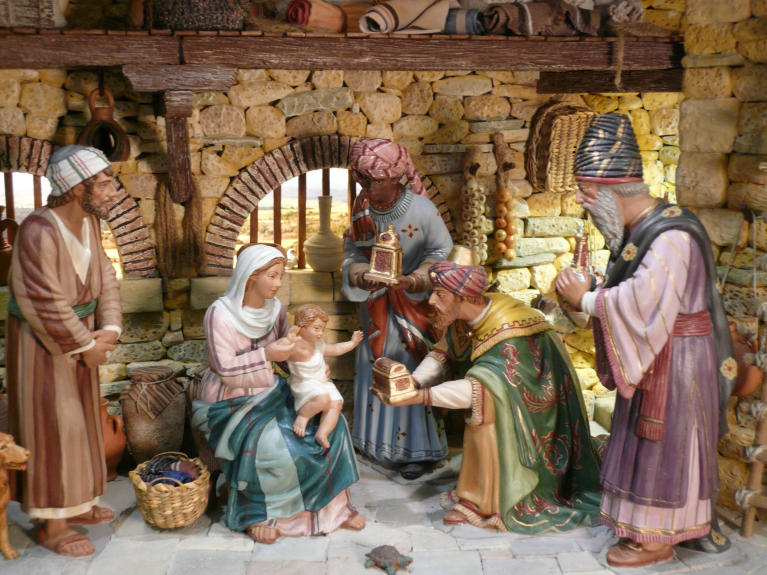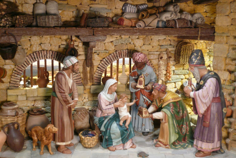 Y este es el resultado final del diorama con el correspondiente atrezo. Las figuras son de Castells en 20 cm: San José, Melchor y Baltasar son de palillo; la Virgen y Gaspar son retoques especiales.