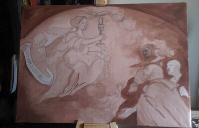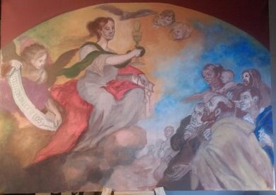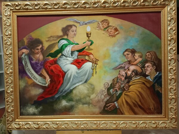 Hoy os muestro u lienzo de 50x70 pintado con acrilicos que realicé por el 2016, con motivo del Año de Murillo. Se trata de una copia de "El Triunfo de la Eucaristia ".