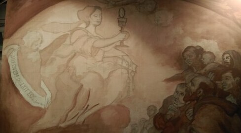 La temática vendría relacionada con la Contrarreforma , el triunfo de la Fe y la presencia real de Cristo en la Eucaristia.