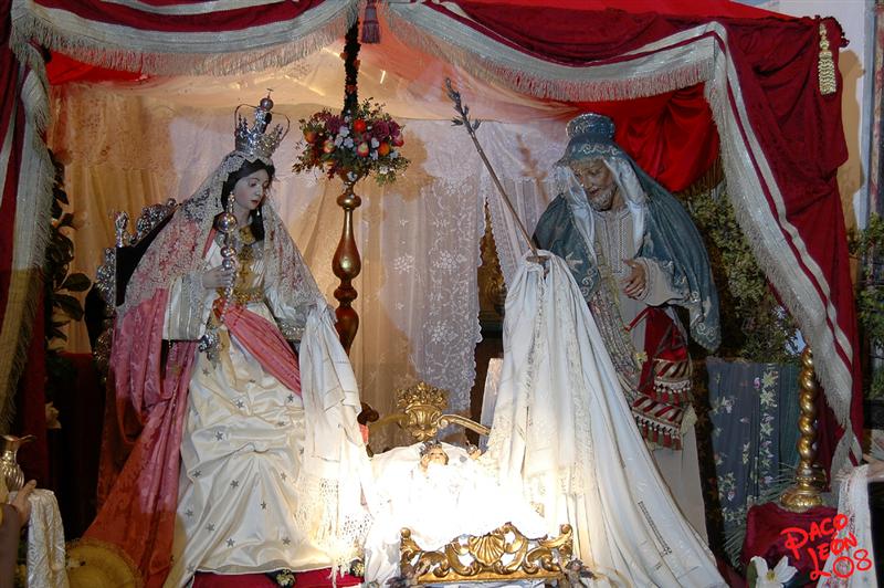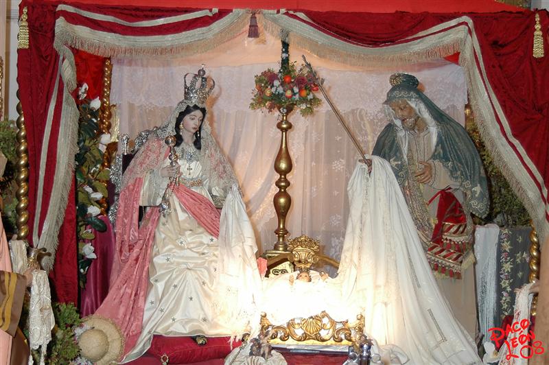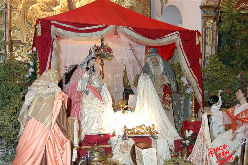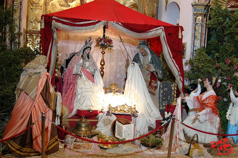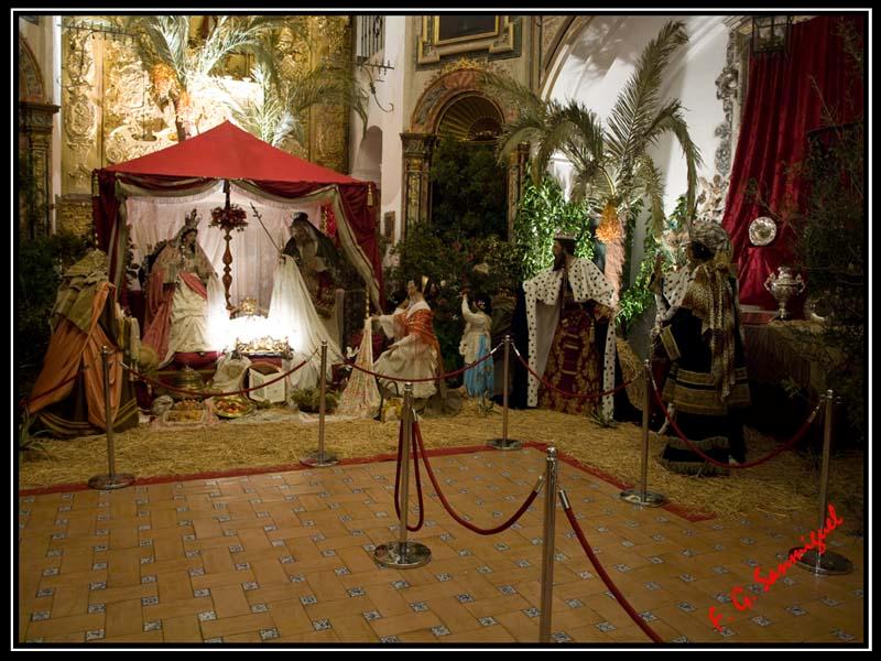 Con motivo de las fiestas navideñas, la hermandad de la Sentencia ha instalado en la Ermita de la Alegría un impresionante belén barroco con imágenes a tamaño real perfectamente caracterizados con brocados, mantones de manila, encajes, sedas, atrezos de plata, etc. La imagen de la cotitular de la hermandad, Nuestra Señora de la Alegría, obra de Miguel Ángel González, ha quedado entronizada en el mismo vestida de reina un original portal con forma de jaima oriental. El resto de los personajes se han compuesto con las figuras del misterio de la Sentencia, tanto las actuales obra del imaginero Miguel Ángel González como las antiguas de Juan Martínez Cerrillo. A éstas se les añade otras salidas del ingenio de los responsables del belén. Así, la fiugra de un senedrita del antiguo misterio hace de San José, mientras que Pocio Pilatos y un soldado romano están vestidos como pastores en la zona izquierda del espectador. La figura de Claudia Prócula, perteneciente al nuevo misterio, aparece arrodillada, ataviada de pastora que adora al Niño Jesús. Junto a ella, los Tres Reyes Magos. Como Melchor está el sanedrita que pide la condena del Señor, mientras que haciendo de Gaspar está un soldado romano que sostiene en sus manos un incensario, en alusión a los tres dones de los Magos. El rey Baltasar y las niñas son figuras prestadas para este belén que incluye también una espectacular palmera de seis metros de altura.