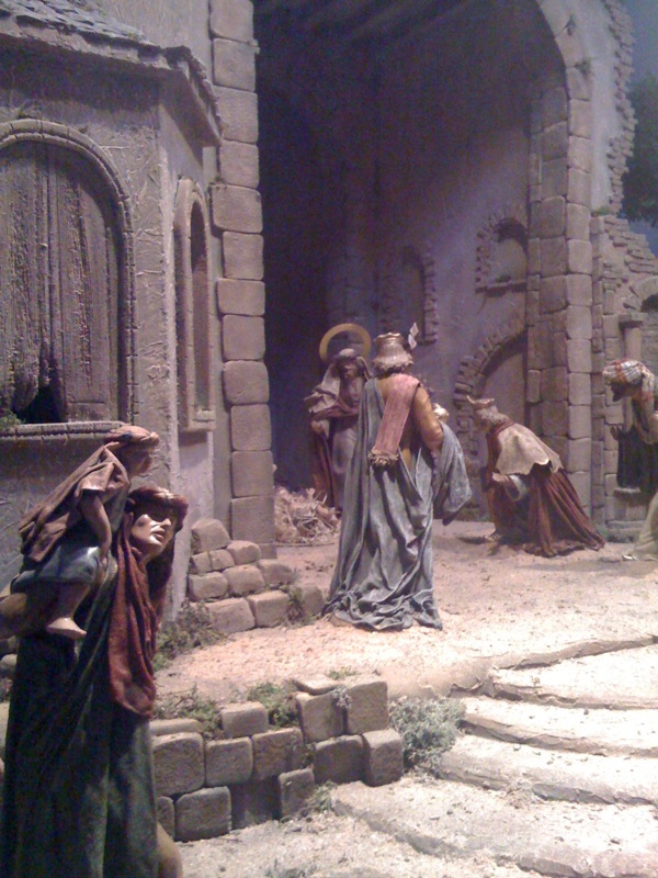 El sábado 6 de Diciembre, visitábamos la Parroquia de Ntra. Sra. de Consolación de Córdoba, a petición del Señor Cura Párroco, D. Joaquín Pérez (nada tiene que ver con el artesano figurista). El motivo de dicha visita, no era otro sino el de ayudarle a montar un Belén Parroquial, dado que a las fechas en las que estábamos y la cercanía de la Navidad, aún estaba sin empezar. D. Joaquín, amante del belenismo, pero inexperto en el tema, le había echado coraje y estaba realizando una réplica del templo de Jerusalén para el Nacimiento de este año. Tal fue la impresión que nos llevamos mi mujer, unos amigos y yo mismo, que ante el recelo que inicialmente teníamos para montar el Belén, decidimos embarcarnos en la peripecia de montar un nacimiento partiendo de la nada. Ni que decir tiene, que la construcción de D. Joaquín, no era aprovechable, debido al tamaño de las figuras y a la ya comentada premura de tiempo; aunque si no hubiera sido por su apoyo, y por el del grupo parroquial, lo que a día de hoy es una realidad, se hubiera quedado de nuevo en el famoso desierto que se instaló el año pasado. Gracias D. Joaquín, Rafaela, Pilar, Manoli, Conchi,..., sin vosotras, esta empresa hubiera sido imposible. Gracias por abrirnos de par en par vuestra Parroquia, gracias por habernos dado la posibilidad de ayudaros a montar este Belén, gracias por acompañarnos en las horas (a deshoras) estas nueve noches en las que hemos compartido estos momentos previos al nacimiento del Niño Dios, gracias por creer ciegamente en nosotros, ya que el primer día, todas nuestras técnicas y truquillos para el montaje del nacimiento eran desconocidos para vosotras. En definitiva, Gracias por todo.