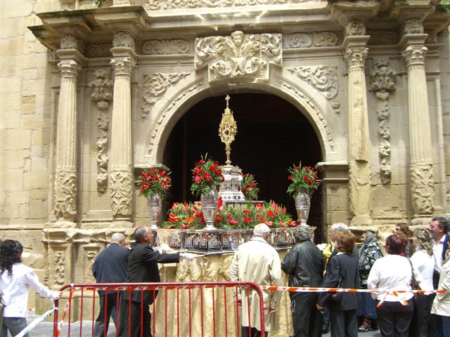 La pena ha sido,como no,el clima,ya que aunque el agua respeto grán parte del día,al final y para desesperación de todos,hizo su aparición.No pudo celebrarse la procesión y la gente no admiró en todo su esplendor todas y cada una de las alfombras realizadas por multitud de asociaciones.