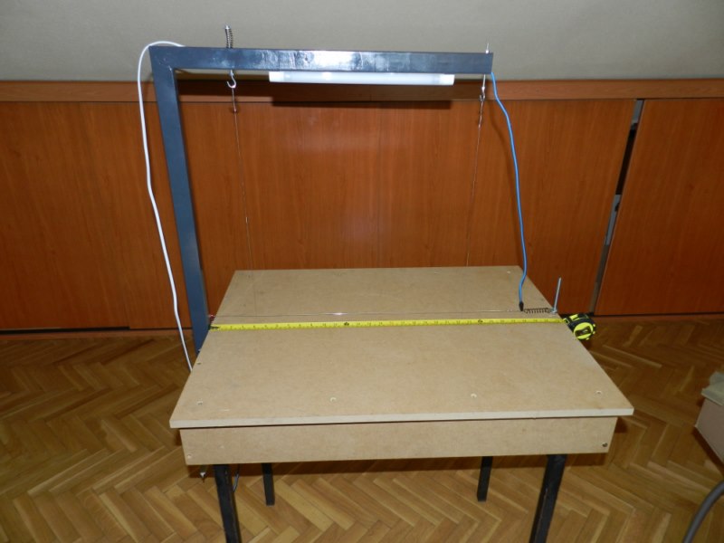 La cortadora que he construido está prevista para cortar planchas de hasta 60 centimetros de ancho (ancho estandar en el que encontramos las planchas en el comercio) lo que nos da una longitud el hilo de unos 80 centimetros
