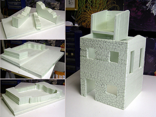 Y a la derecha un primer planteamiento de una casa de piedra.