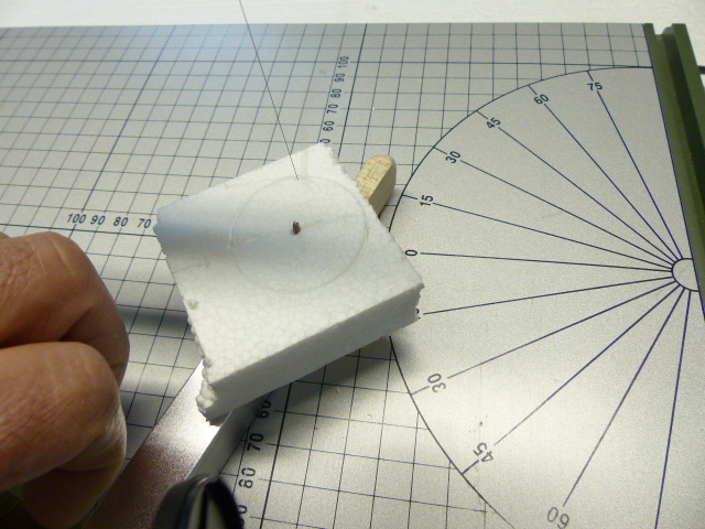 Con la máqina encendida (y mucho cuidado con nuestros dedos) colocamos el trozo de porex en el clavo y lo hacemos girar sobre este hasta completar el circulo, momento este en el que apagaremos la máquina de corte para extraer la pieza sin producir en esta imperfecciones ocasionadas por el calor del hilo de nicrom.
