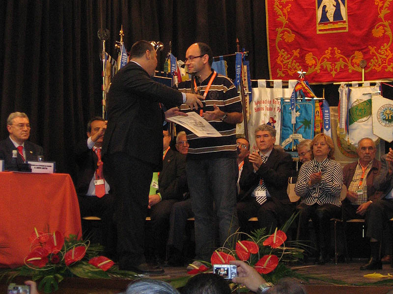 Foto 6: entrega del Premio Federación correspondiente a la Asociación de Belenistas de Pamplona, recogido por nuestro compañero 'bepo75' en representación de las premiadas (todavía recogería otro 'Federación', tampoco para él ).