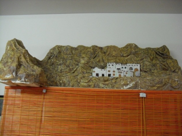 Es una montaña que de un lado tiene una cueva que será para la representación del nacimiento y del otro lado, el frente de la sinagoga.