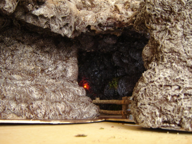 Ola Forer@s os pongo unas fotos de la cueva que e echo con espuma de poliuretano en el fondo de la cueva no se aprecia bien pero e puesto unos espejos para hacer creer que tiene mas profundidad no me a quedado muy bien que digamos pues con la espuma estoy empezando a trabajarla y en cuanto los colores soy un poco paleto para darle el color que toca espero que os guste