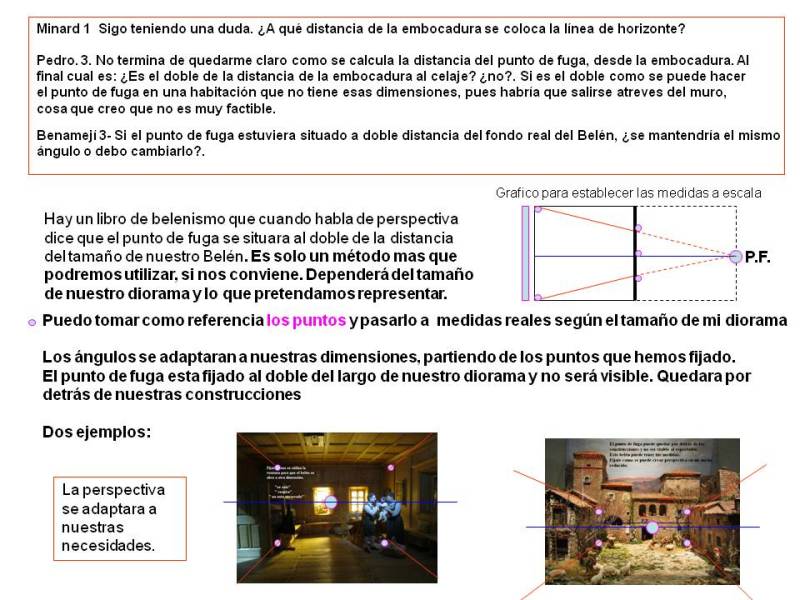 Nosotros cuando trabajamos en perspectiva nuestros belenes (dioramas), vistos desde una sola cara (embocadura), tendremos muy en cuenta "como el ojo lo ve".