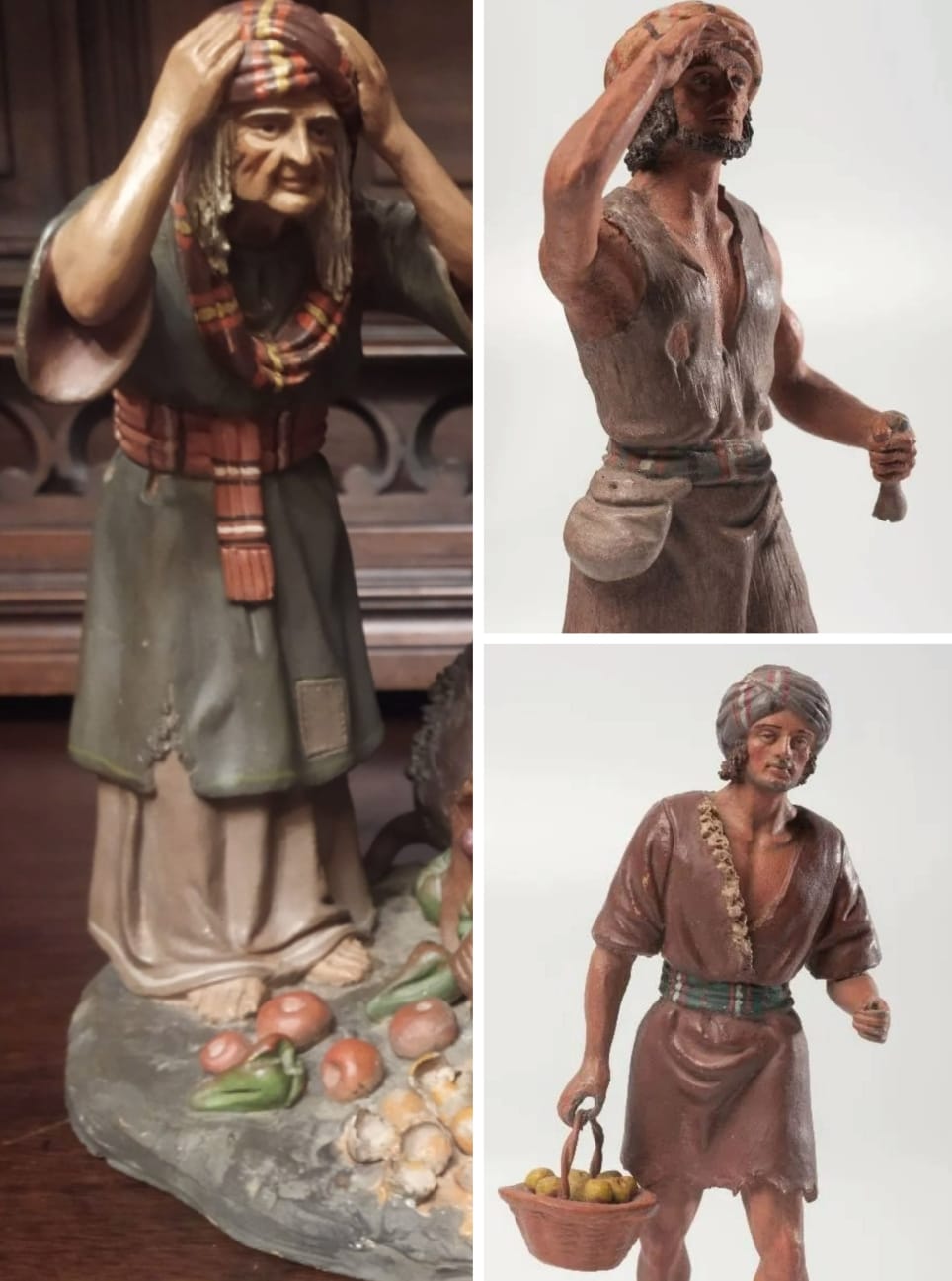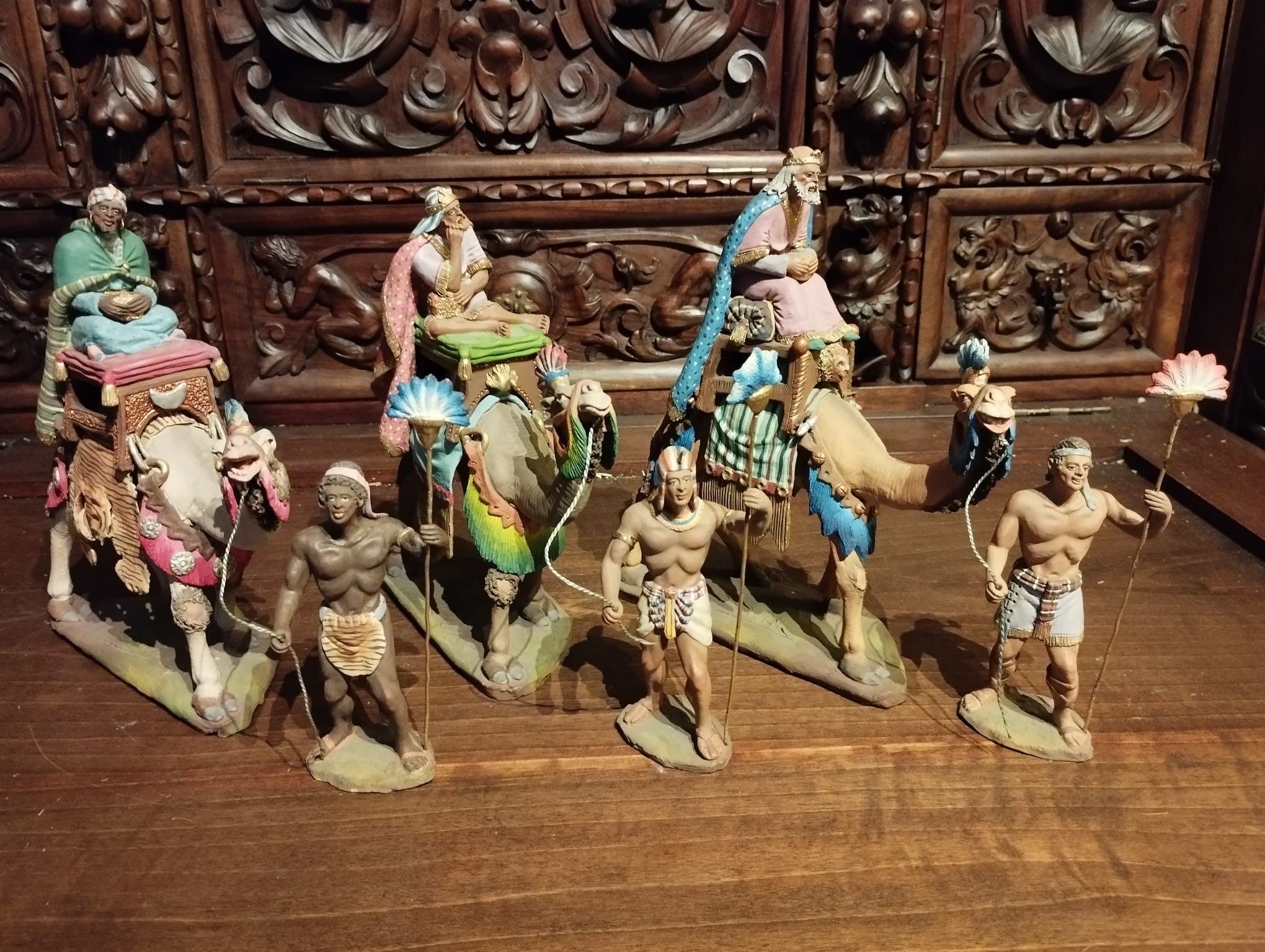 por ejemplo estas siempre las hemos atribuido a los inicios del taller...del padre, la de la derecha parecida también de 12 y la mas pequeña de 8 cargando sobre el camello, ¡más dudas! el camello es muy fino ya con la calidad de la mano del hijo...