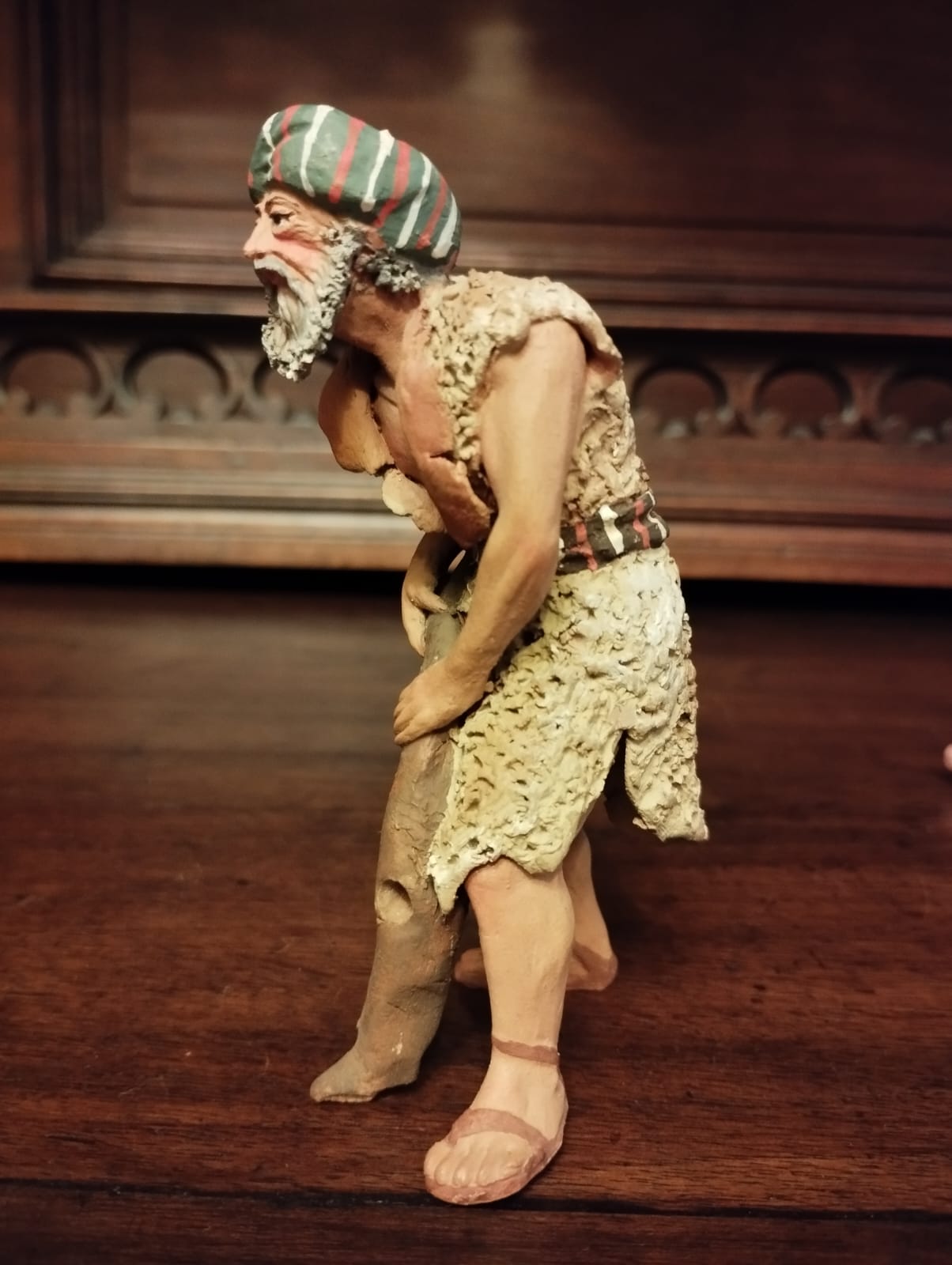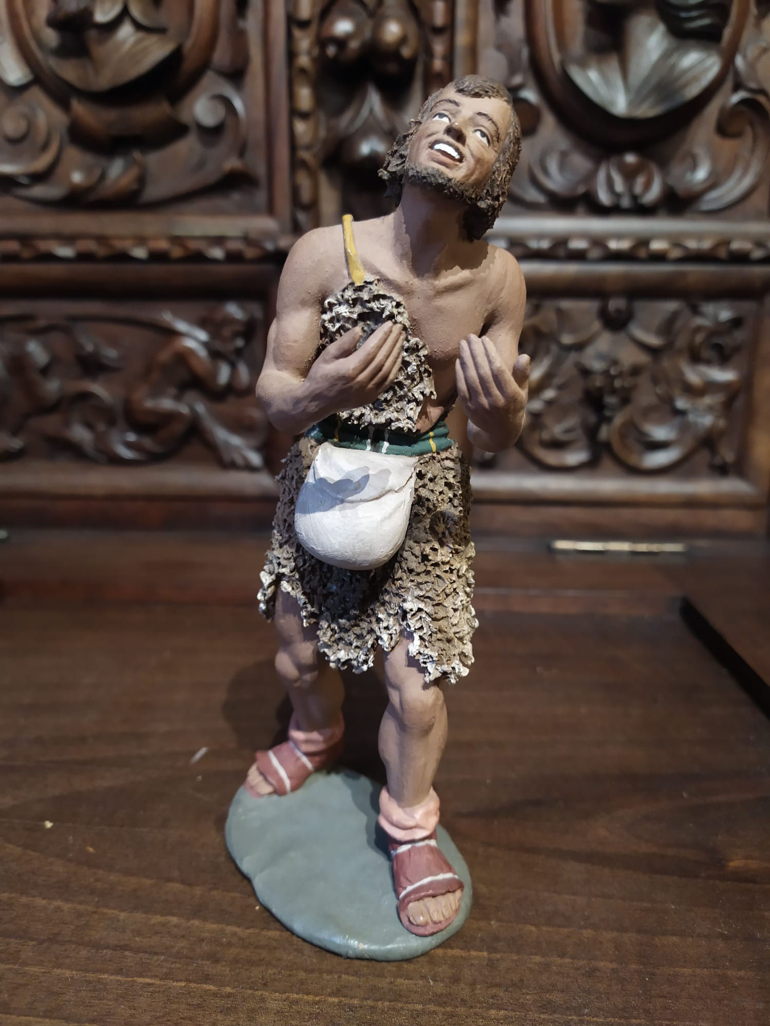 ...también pequeños detalles como el parche en la ropa y la policromía diferencian el trabajo posterior ya sólo del hijo.