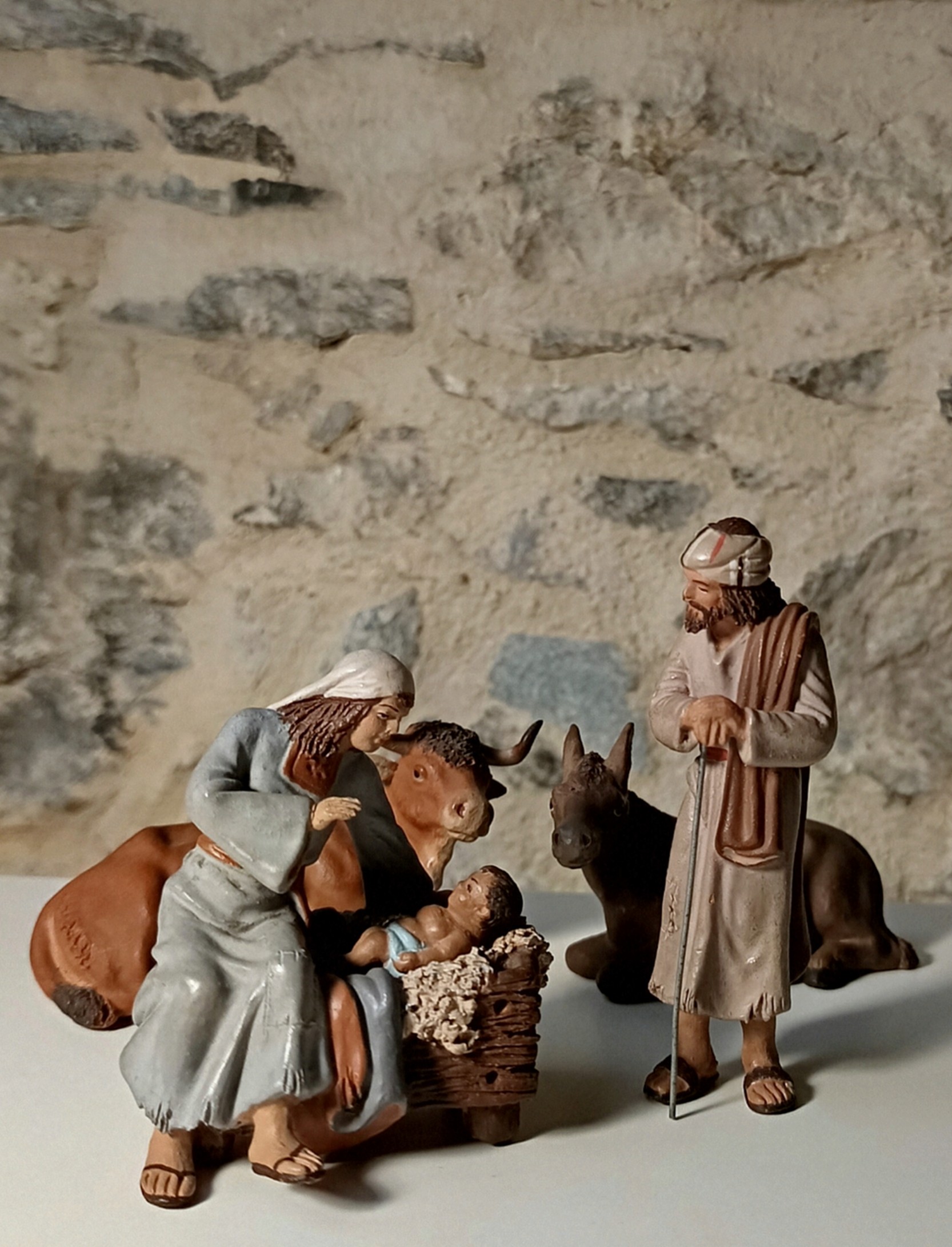 Cambiando de tercio y recordando la propuesta de sacar los misterios de nuestras vitrinas , comparto este maravilloso nacimiento "complicado" en el hilo de Daniel hijo por dos razones más.