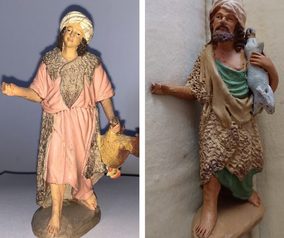 Tercero. En la comparativa que presentas puede observarse con bastante claridad que son la misma figura, y que no existe una evolución de estilo entre ambas —algo que, además, resultaría casi impensable si habláramos de un salto estilístico desde la pastora inicial del padre hasta ese pastor—, sino diferencias derivadas del proceso de seriación.