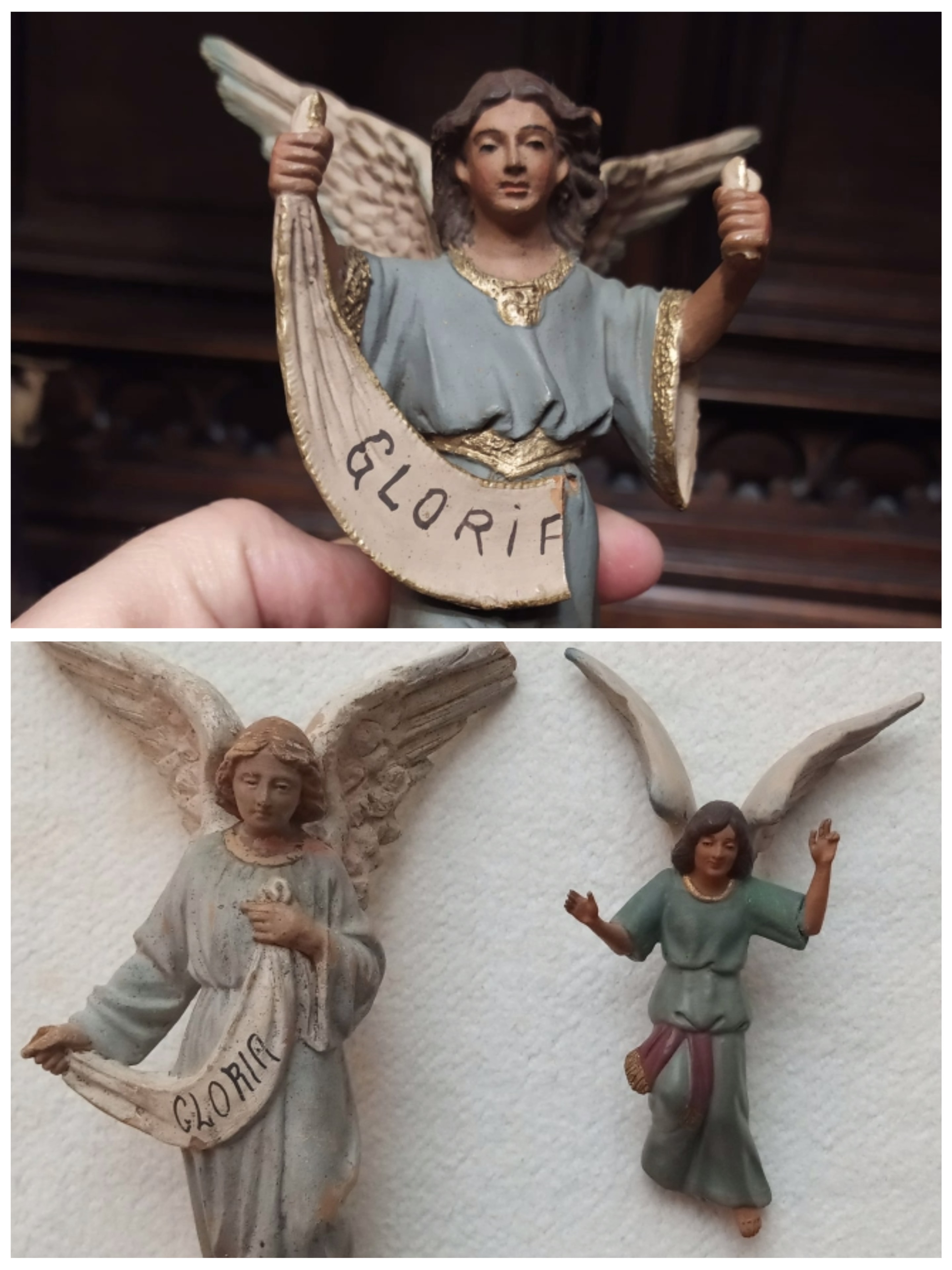 Apostaría mejor sobre seguro😅(es broma), en los paños o telas con el mensaje de los ángeles de Castells en la imagen superior y en la comparativa claramente no son la misma letra, por ejemplo se ve muy claro en las dos primeras G y L.