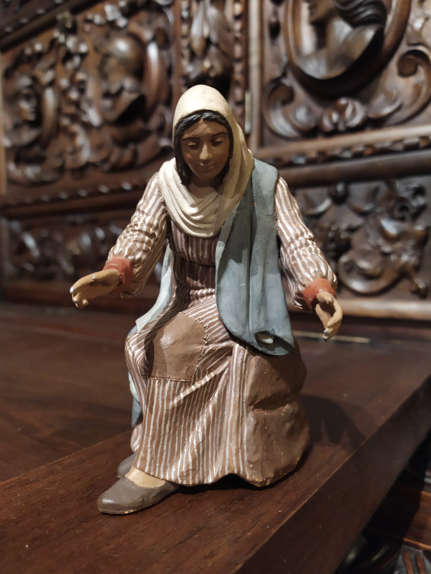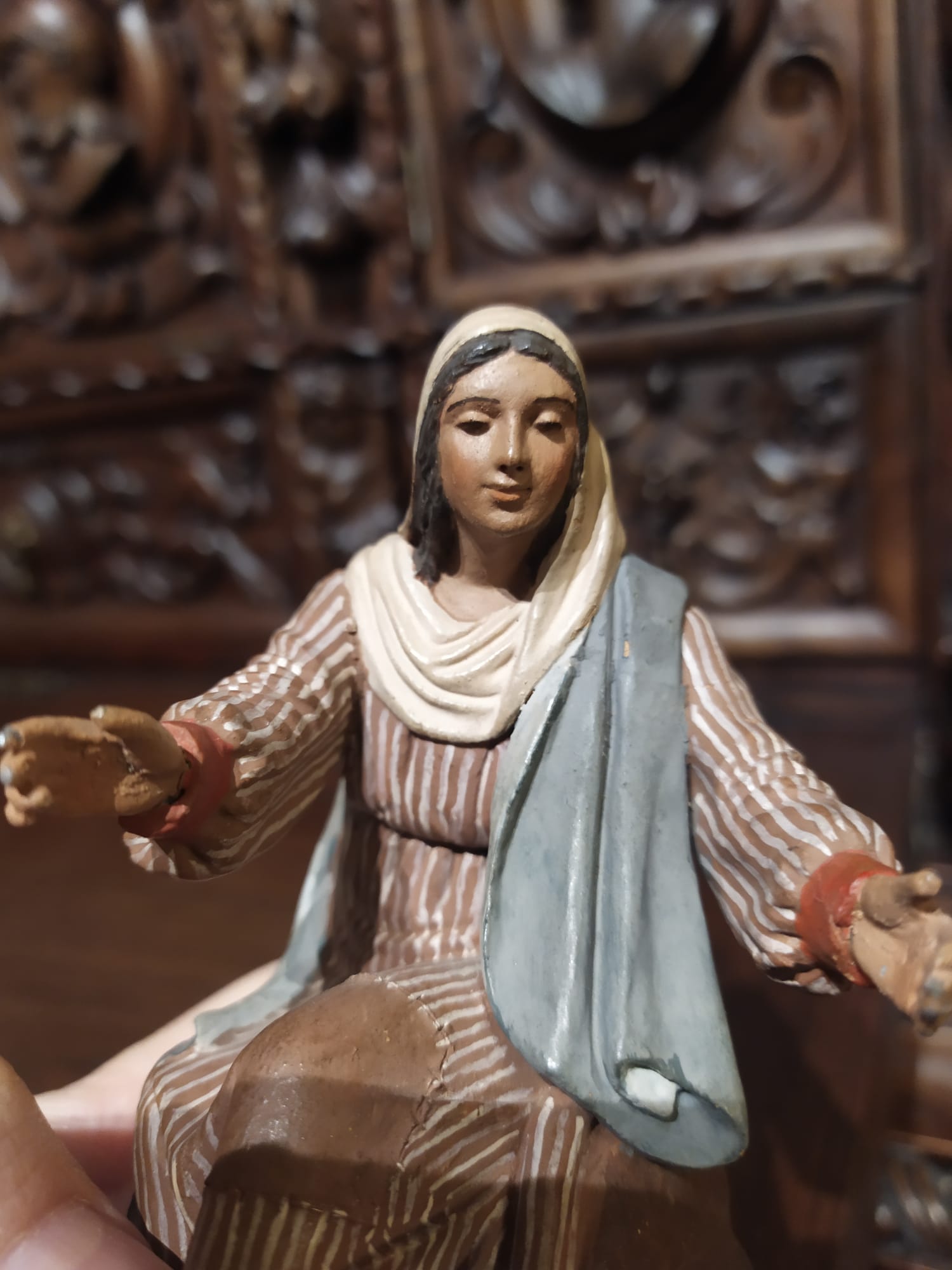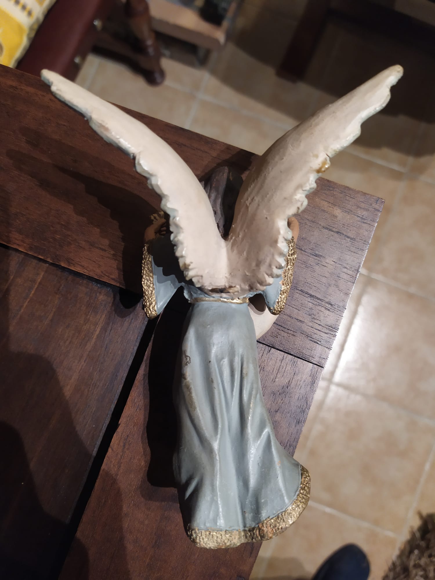 Aprovecho Miguel y se qué tienes buen ojo clínico, que te parece (en nuestro argot) 'la fisura' en la espalda de la figura de la Virgen, demasiado recta y horizontal para ser una rotura, es un corte a propósito, parte de un molde...?