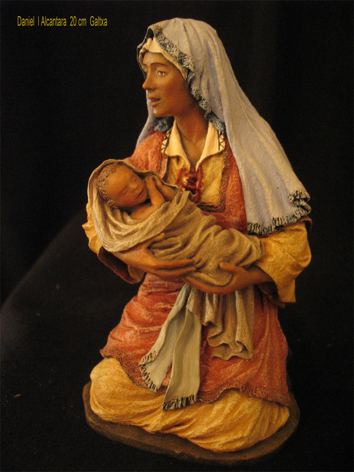 A mi las figuras de Alcántara me "encantaran" je je, solo una pequeña objeción, para mi gusto van con ropajes excesivos, muy tapadas, como muy abrigadas para ese lugar geográfico; pero también entiendo que esa es una de las señas de identidad de ese autor. O sea, que con el calor que hace dejamos las cosas como están y al que le gusten pues que las compre, y a quien no pues no.