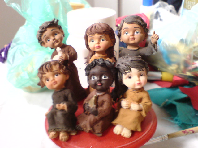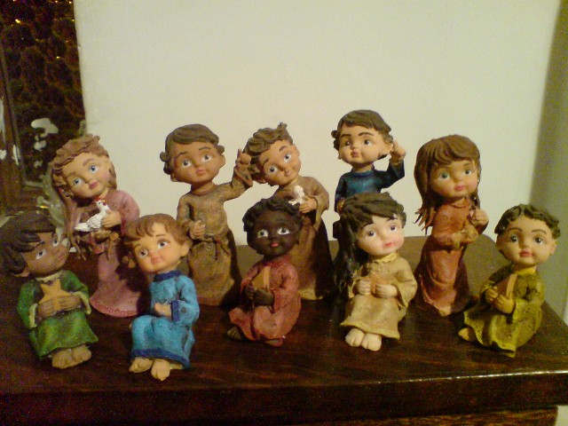 Hola a todos en esta ocasión les traigo mi ultima transformación, siempre habia querido tener niños en mi belén y aunque ya habia visto que algunos transformaban ángeles y alguna vez hice uno no quedaba muy conforme, hasta que vi el post del compañero TONIATO quien me ha animado hacerlos para ponerlos como en especie de una escuela o mas bien una escena de maestro y alumnos, y pues aqui el resultado, cabe resaltar que como todos son niños, le he cambiado el sexo a dos para tener algunas niñas, el cabello se lo he realizado con la pistola de silicón caliente fui haciendo mechones y mechones y luego pinte
