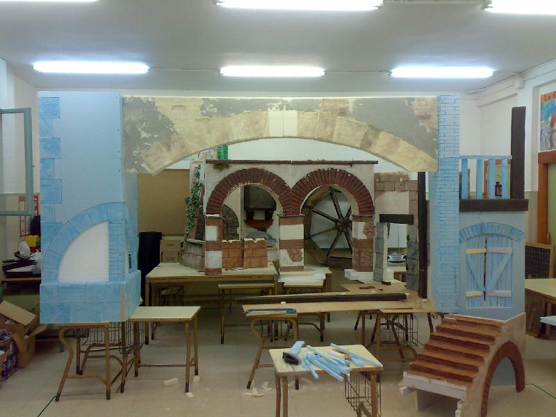 Te adjunto un enlace del álbum del belén del año pasado para figuras de 60 cm. Para que te hagas una idea, el conjunto final ocupaba una superficie de unos 20 m2 con edificaciones de 1,80 m, todo de pórex.