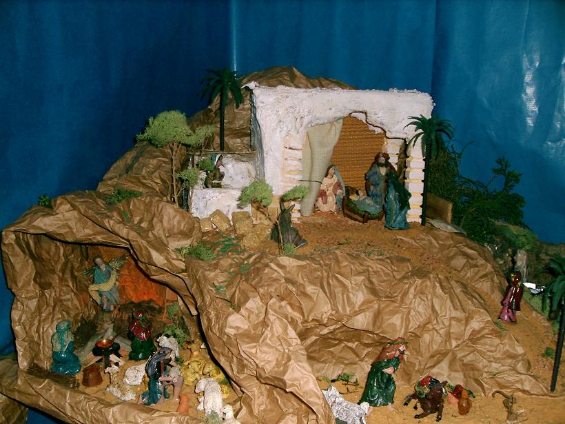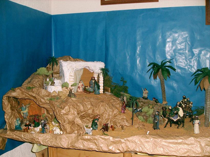 Me gusta el planteamiento, los materiales son tradicionales y me recuerda a esos primeros belenes que todos comenzamos a hacer, si con el tiempo sustituyes el papel de embalar por otro material para hacer las rocas, tu belén cambiará totalmente, seguro que para el proximo año encuentras en este foro un montón de ideas y técnicas para poder aplicar. Que suerte disponer de tanto sitio para poner el belén.